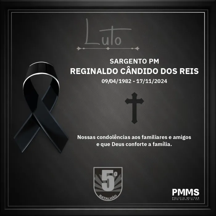 Coxim (MS): A Polícia Militar do Estado de Mato Grosso do Sul comunica, com grande tristeza, o falecimento do 3º Sargento PM Reginaldo Cândido dos ...